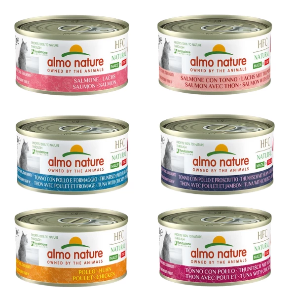 Almo Nature HFC Cat Natural Limited Edition Made in Italy 70 gr è l’alimento umido ideale per gatti adulti. Le 6 nuove ricette complementari, sono preparate con ingredienti HFC, ovvero in origine idonei al consumo umano, ora alimenti per il tuo gatto.