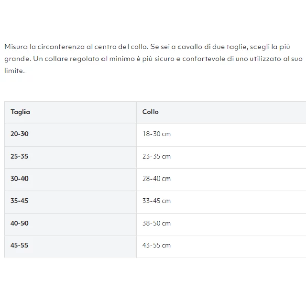 - La misura ideale del collare comprende la circonferenza del collo del cane (es. collo 38cm = collare 35-45cm). In caso di dubbi (misura del collo al limite della taglia), preferire la taglia maggiore.