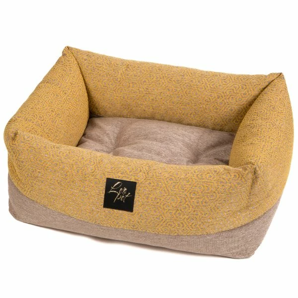 La Cuccia rettangolare Elba Gold Hexagon Range Premium Leopet è realizzata in morbido tessuto Teflon, con cuscino estraibile double face, sulle tonalità autunnali del beige e ocra. Prodotto made in Italy che sicuramente sia tu che il tuo Pet, amerete.