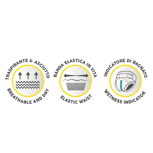 - ottima vestibilità e aderenza grazie all’ampia chiusura adesiva