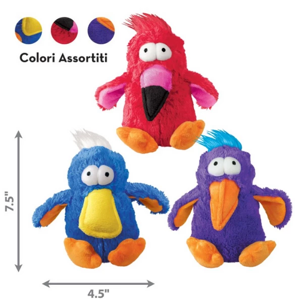 Pur essendo morbidi e soffici, sono anche rinforzati internamente per una maggiore resistenza. Questi uccellini non contengono alcun ricambio sonoro, bensì due palline sonore in grado di procurare ancora più divertimento.