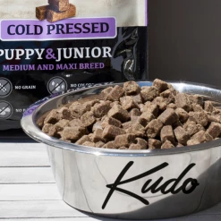 Importante: Utilizzare il dosatore Kudo o una bilancia di precisione da cucina. Non utilizzare altri misurini per crocchette, il cibo pressato a freddo è molto più concentrato.