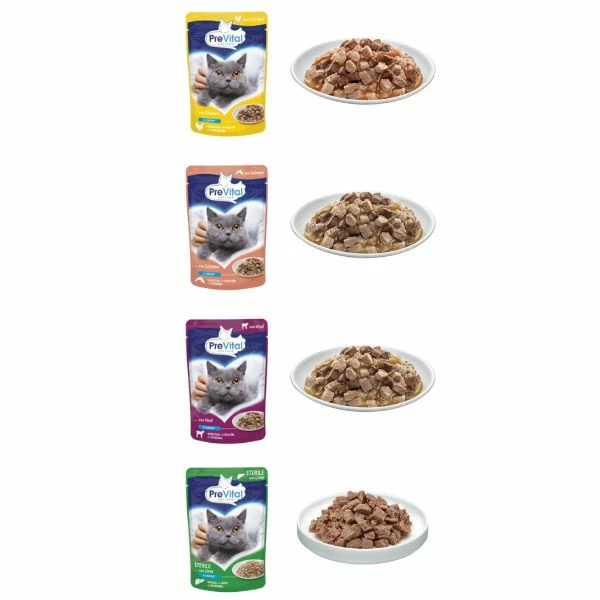 Prevital Cat Sterilised nel formato Multipack XXL Box da 48 bustine da 100 g, è l’alimento umido proposto in 4 deliziose ricette in salsa, del quale il tuo gatto sterilizzato andrà ghiotto. Alimenti per gatti completi e bilanciati al 100% per ogni stile di vita, dal gatto giovane a quello anziano.