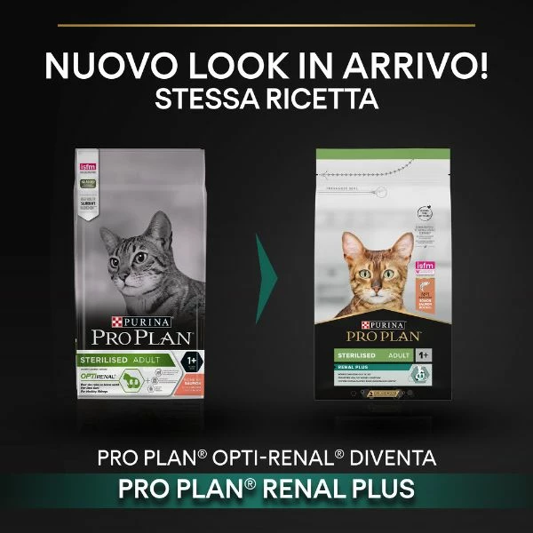 Purina Pro Plan Renal Plus Sterilised Adult 1+ con Salmone è l’alimento secco completo per gatti adulti sterilizzati, formulato per promuovere una sana funzione renale. Il prodotto ideale per il mantenimento dell’amico micio, in piena salute.