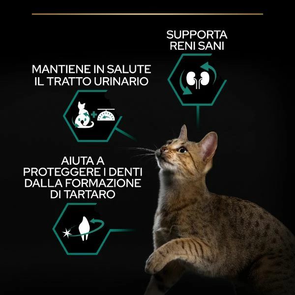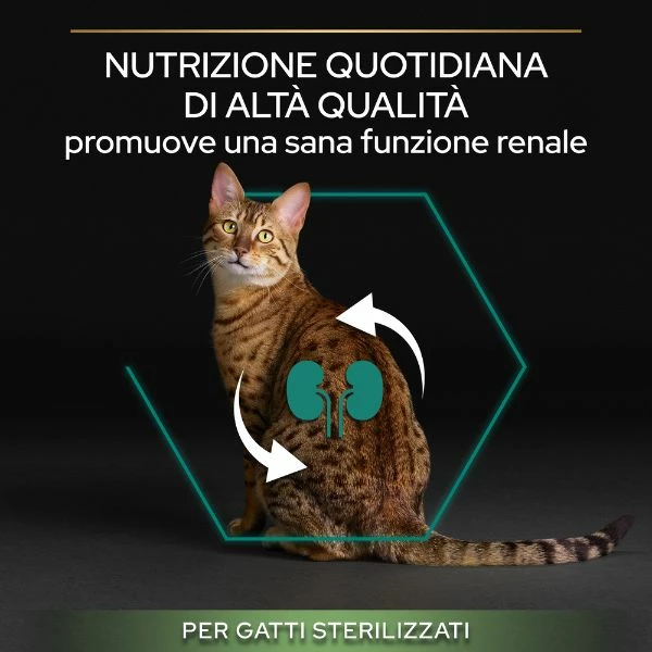 - Formulato per gatti sterilizzati per supportare il mantenimento in salute del tratto urinario e un ideale peso corporeo.