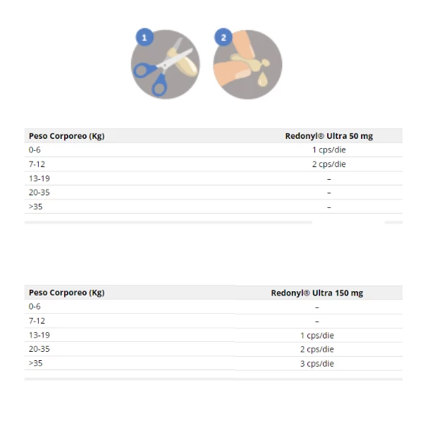 Consigli per l’uso: Somministrare per cicli di 60 giorni, seguendo la tabella indicata in gallery. Aprire la capsula birillo e spremerne il contenuto nella bocca dell’animale o mescolarlo alla razione di alimento. In alternativa, le capsule birillo possono essere ingerite intere.