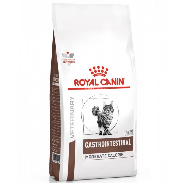 Royal Canin Gastrointestinal Moderate Calorie è un alimento secco completo per gatti. Adatto per ridurre il rischio dei disturbi acuti da malassorbimento intestinale e compensare la cattiva digestione. Con ridotta concentrazione di grassi.