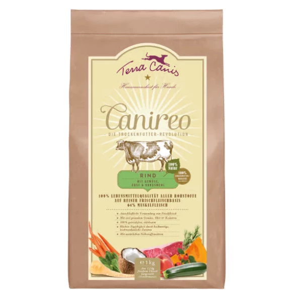 Terra Canis secco Canireo Grain Free al Manzo è l’alimento completo ideale per cani adulti, con uso esclusivo di carne fresca, dalla consistenza croccante secondo cottura artigianale in forno. Il tuo cane adorerà questa ricetta…e tu anche.