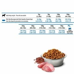 Istruzioni per l’uso: Servire il cibo asciutto. Dopo il periodo di introduzione, dai al tuo cane quantità giornaliere in base al peso del cane sulla tabella. La porzione giornaliera raccomandata è solo una linea guida. La quantità del pasto giornaliero dipende dalle condizioni e dall’età del cane, nonché dalla stagione. L’acqua fresca e pulita dovrebbe essere sempre disponibile. Conservare in un luogo fresco e buio.